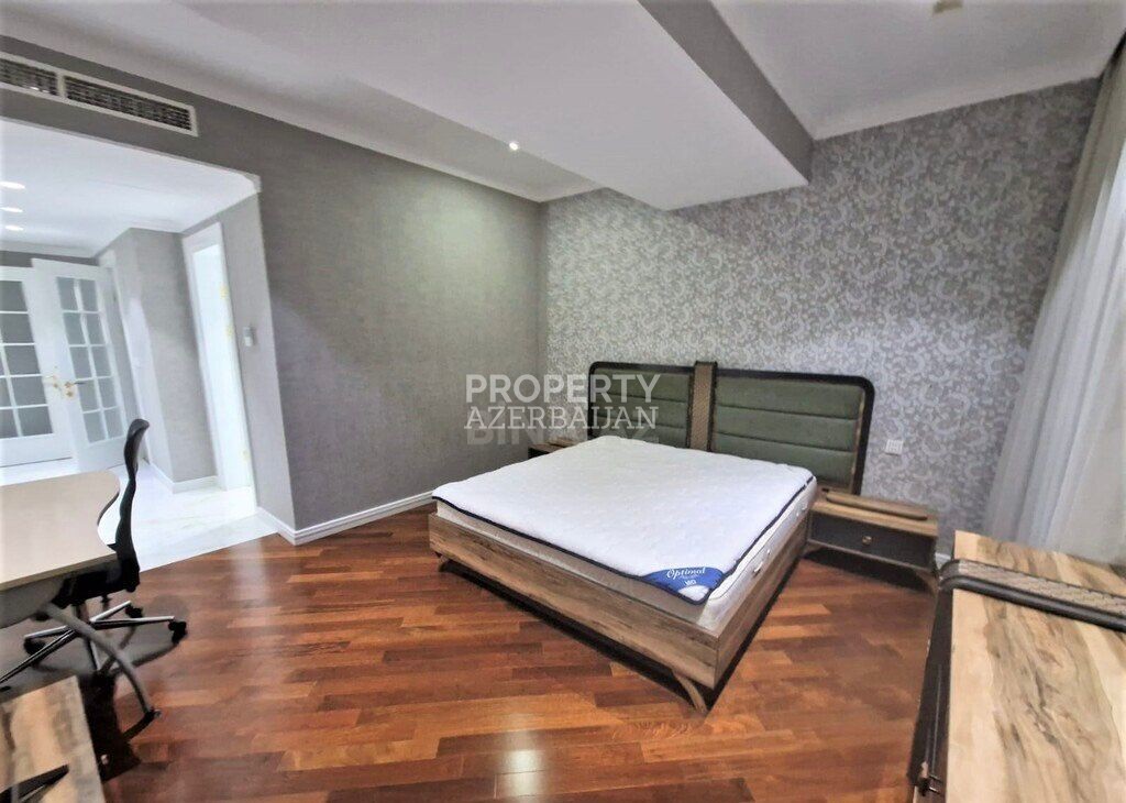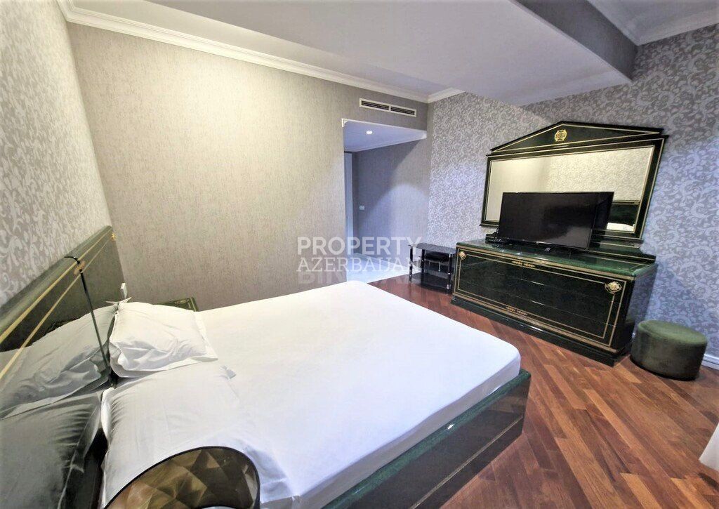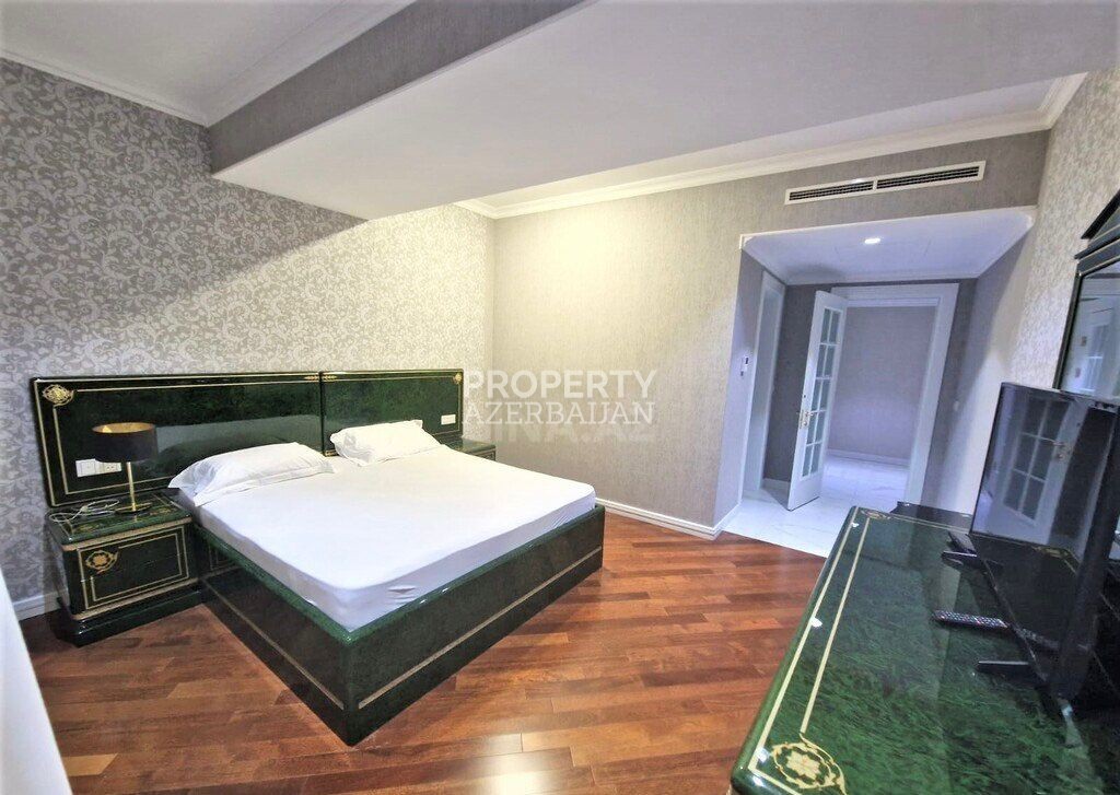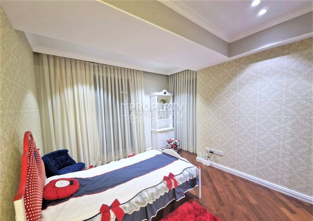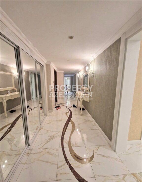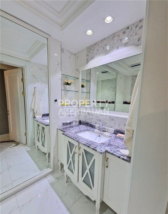 This luxury 4-bedroom apartment with a total of 6 rooms is located in the prestigious Port Baku Residence, in Nasimi district, near 28 May metro station.