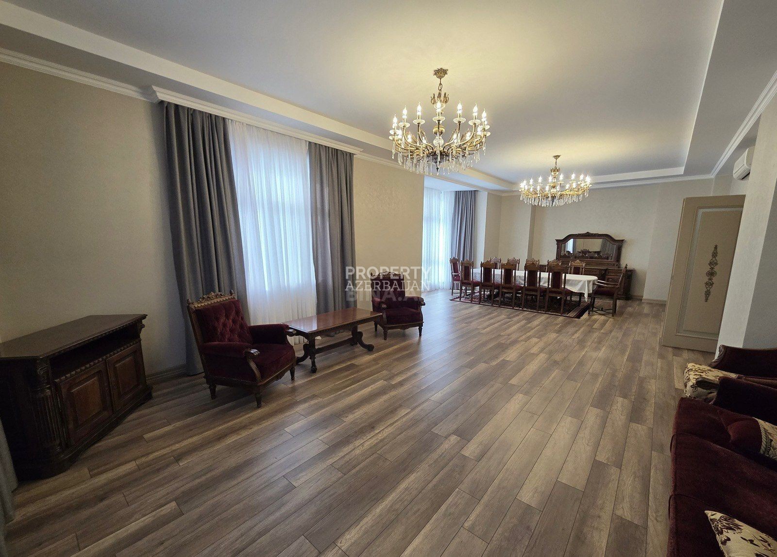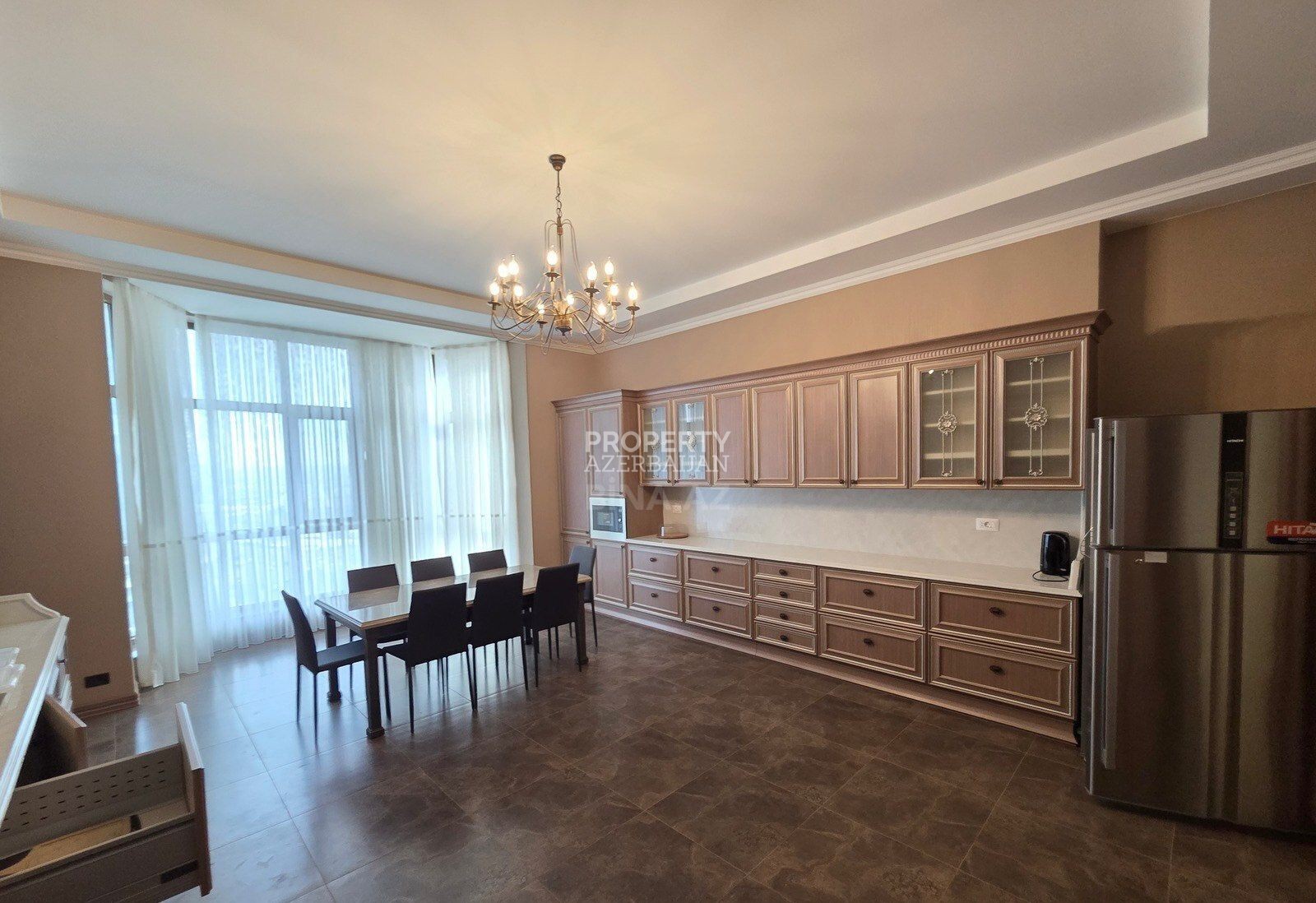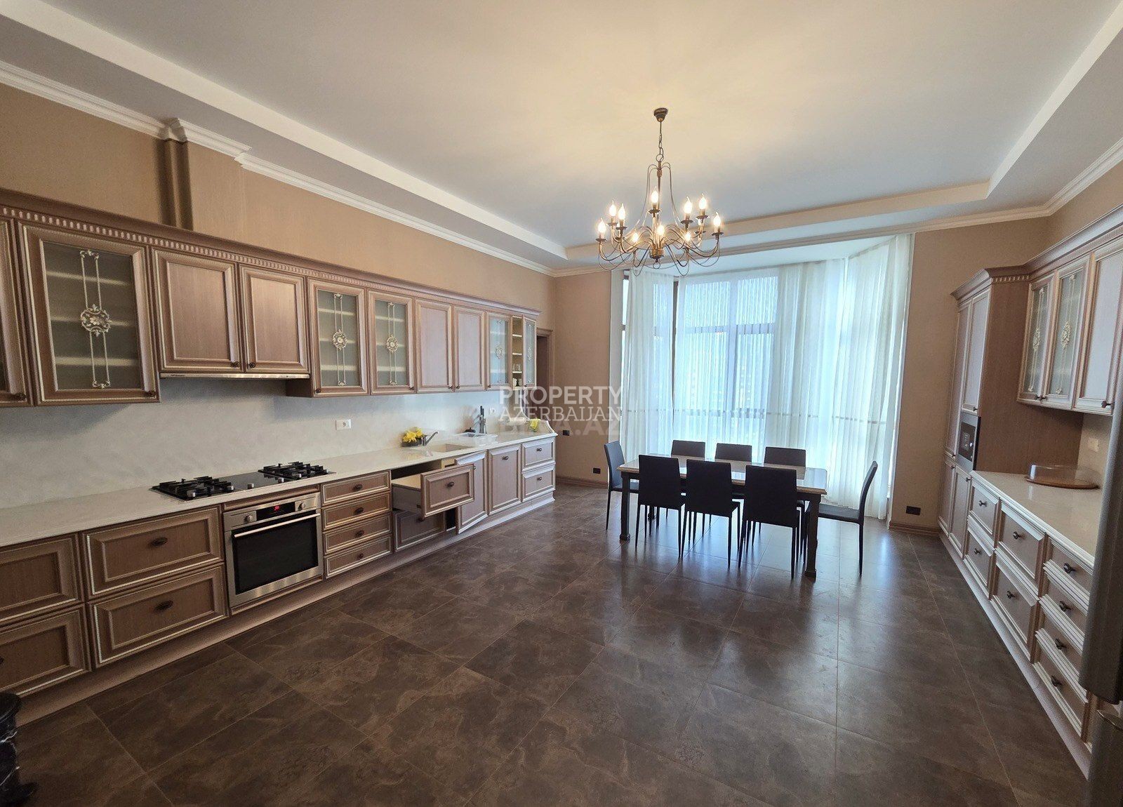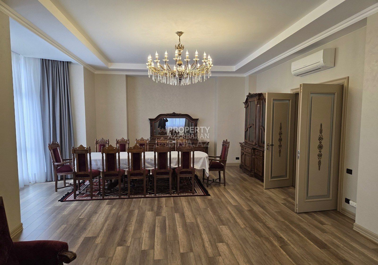 This luxury 5-bedroom apartment with a total of 7 rooms is located in the city center, on Zarifa Aliyeva Street, near Port Baku and Absheron Marriott Hotel.