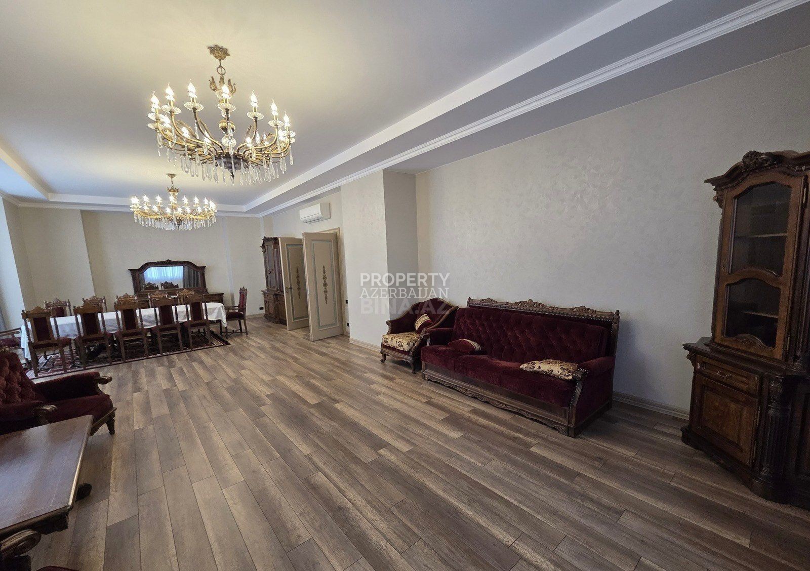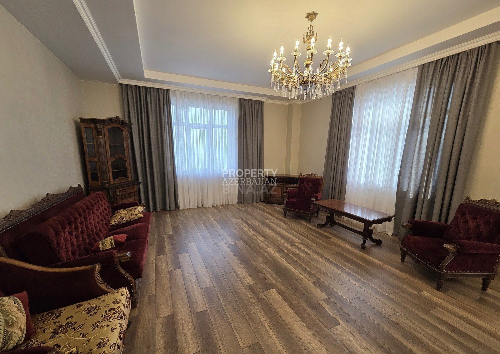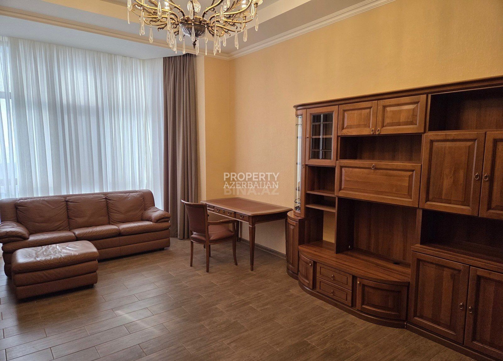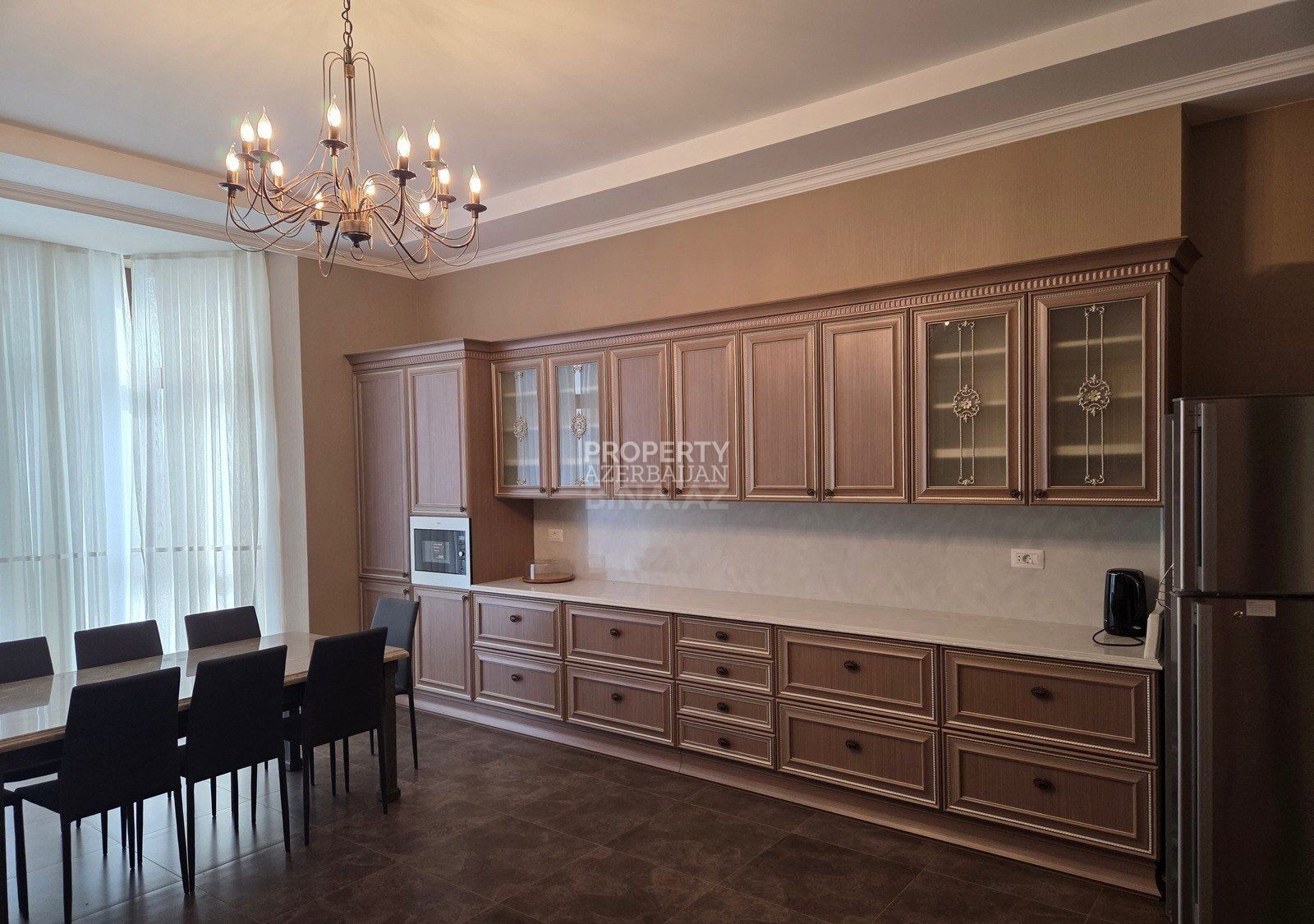 This luxury 5-bedroom apartment with a total of 7 rooms is located in the city center, on Zarifa Aliyeva Street, near Port Baku and Absheron Marriott Hotel.