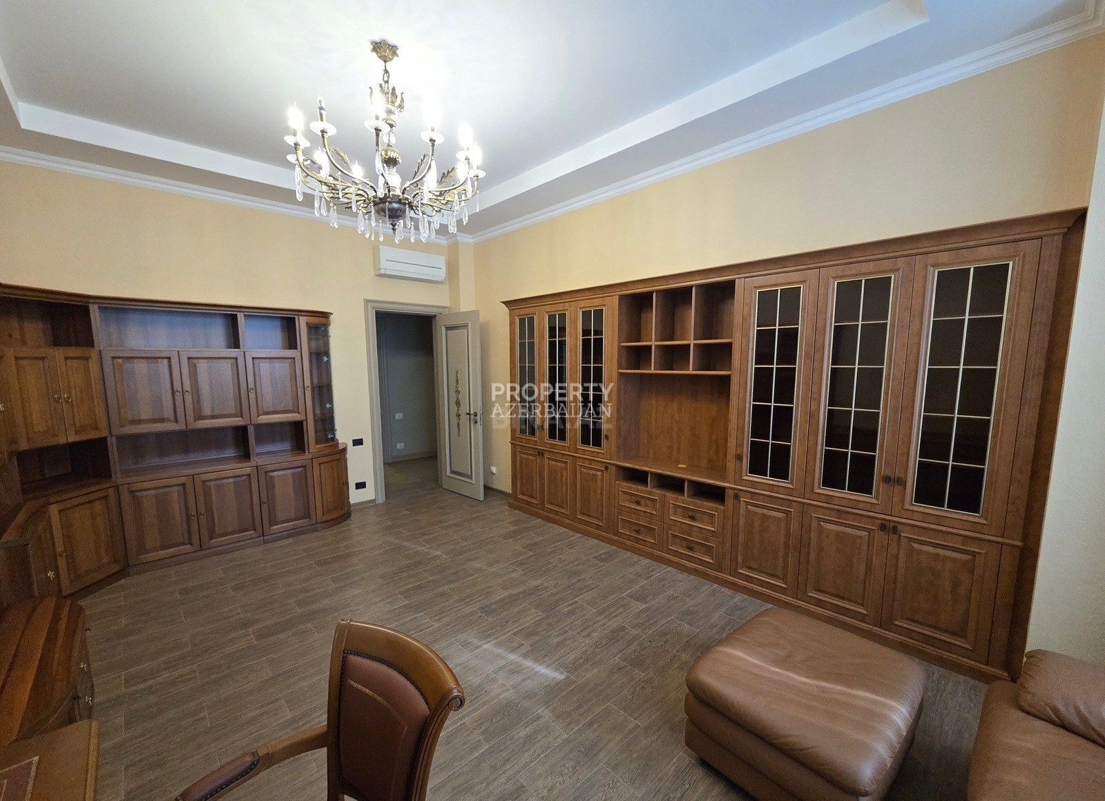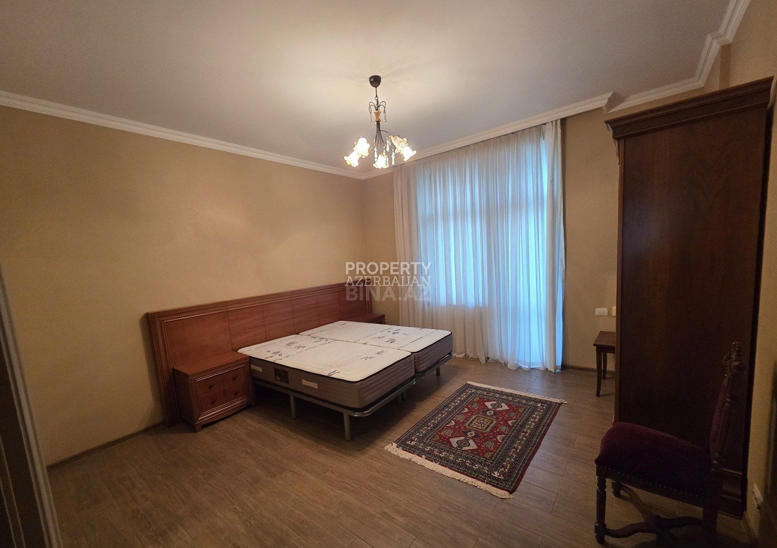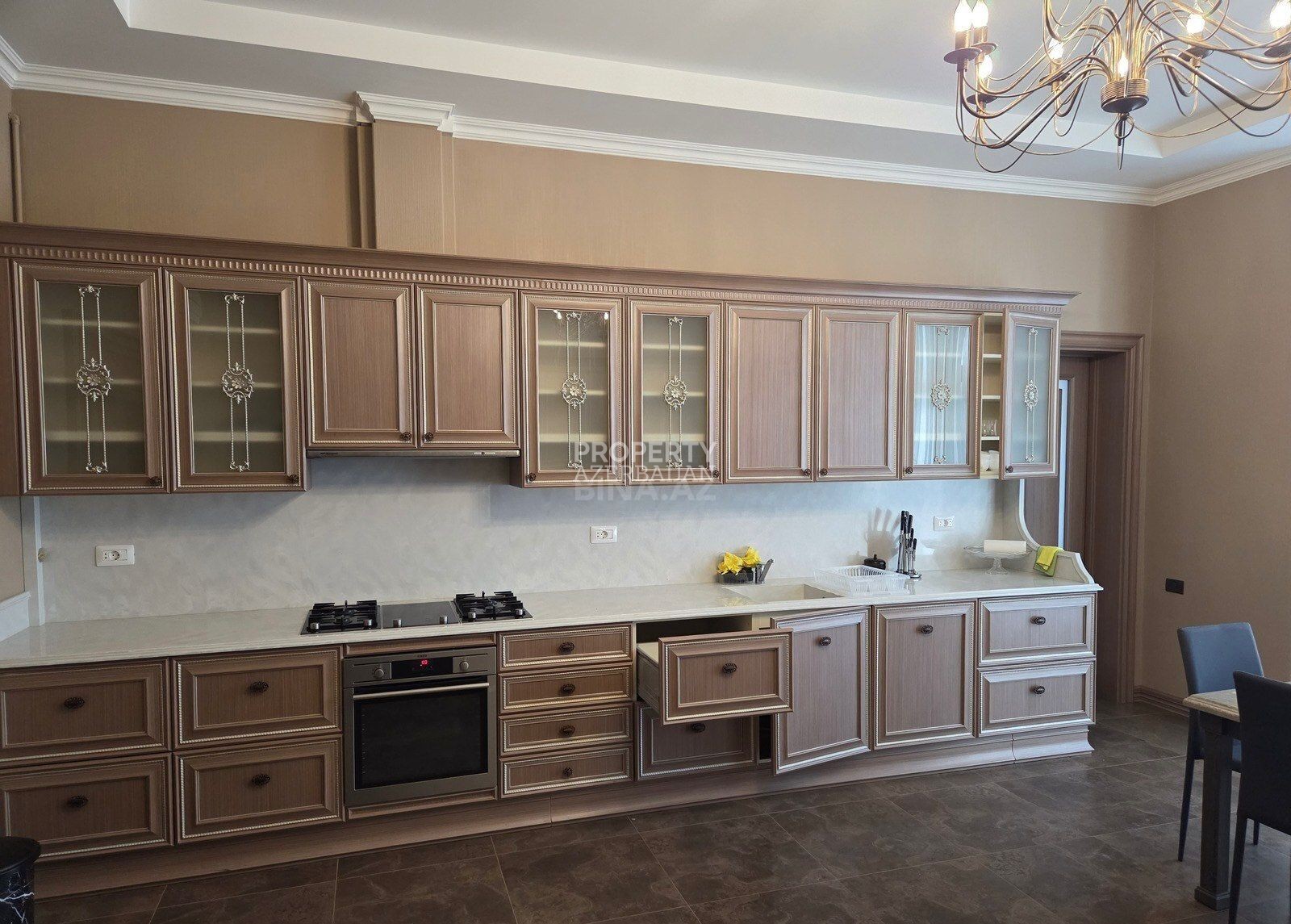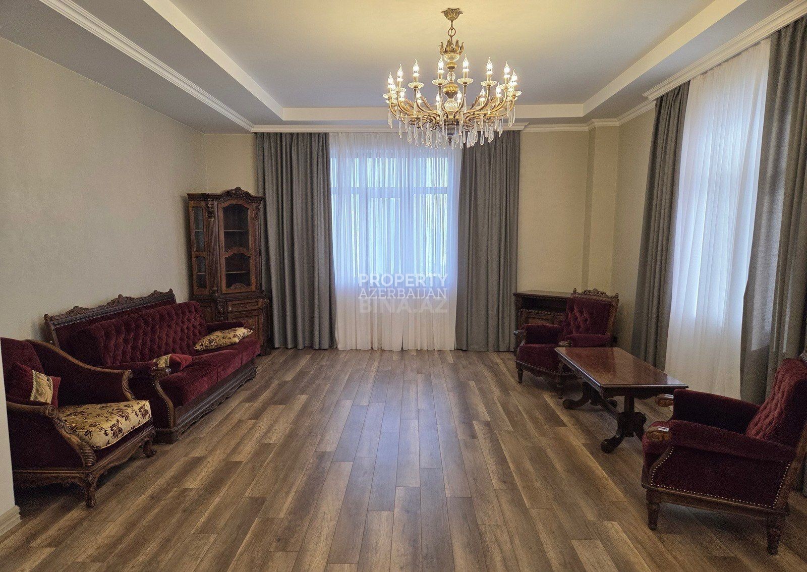 This luxury 5-bedroom apartment with a total of 7 rooms is located in the city center, on Zarifa Aliyeva Street, near Port Baku and Absheron Marriott Hotel.